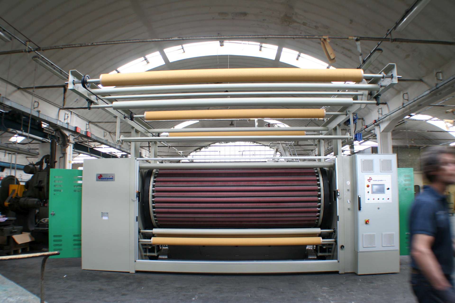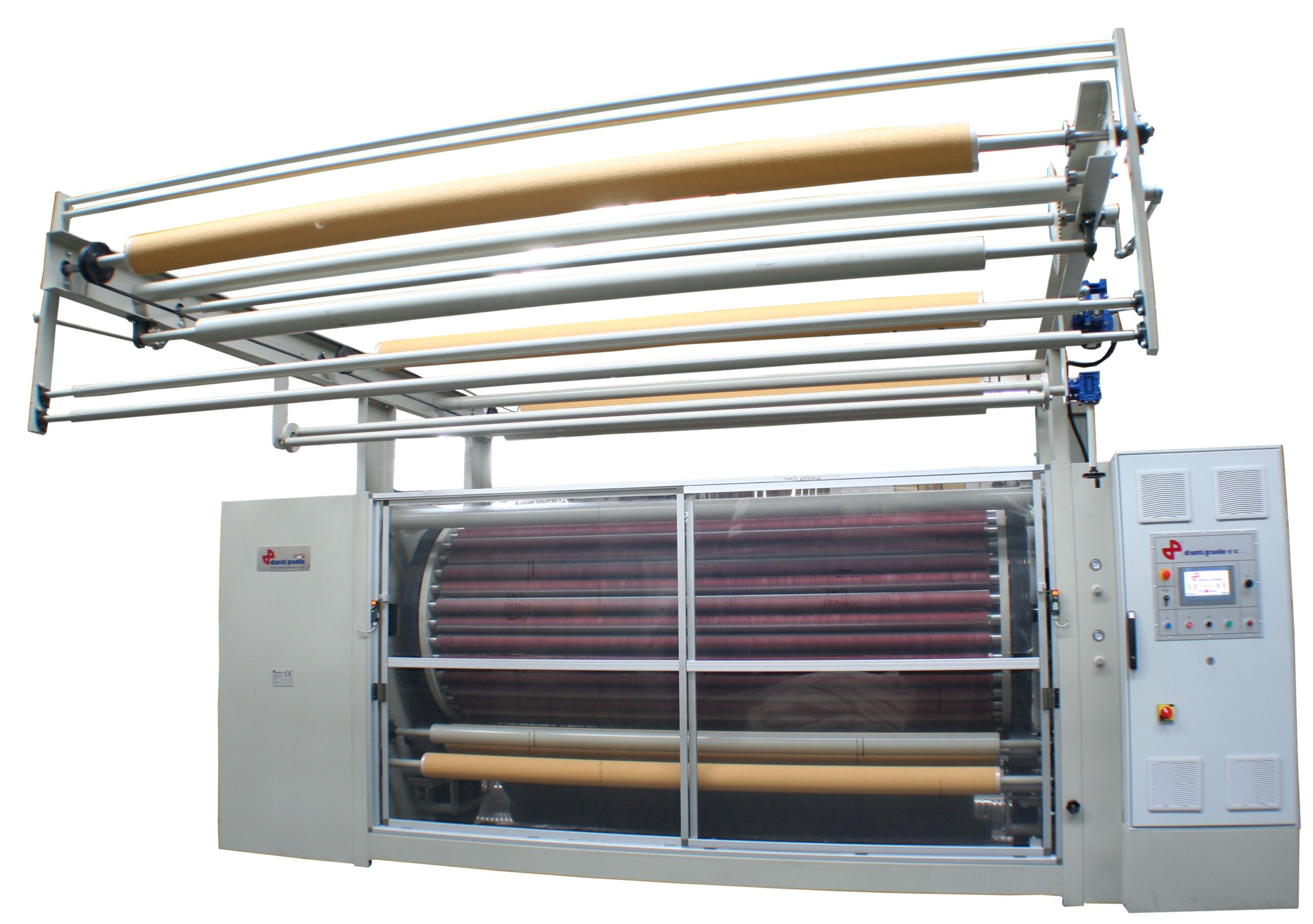 La garzatrice R9000 è il risultato della lunga esperienza della DANTI PAOLO che ha iniziato a costruire garzatrici nel 1935. La macchina è controllata da PLC con interfaccia operatore tramite Touch SCreen e comandata con motori trifase alimentati con inverters vettoriali.