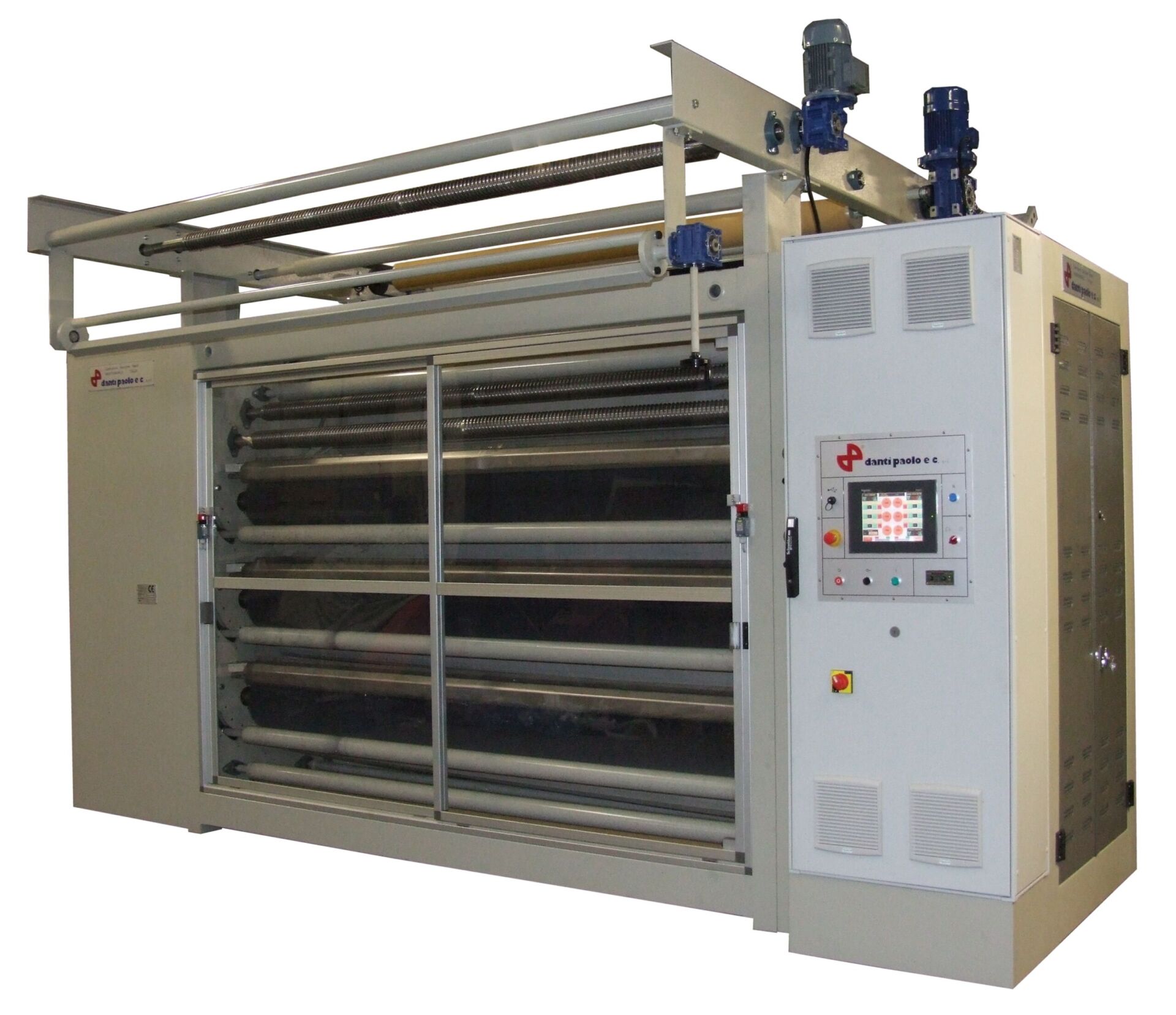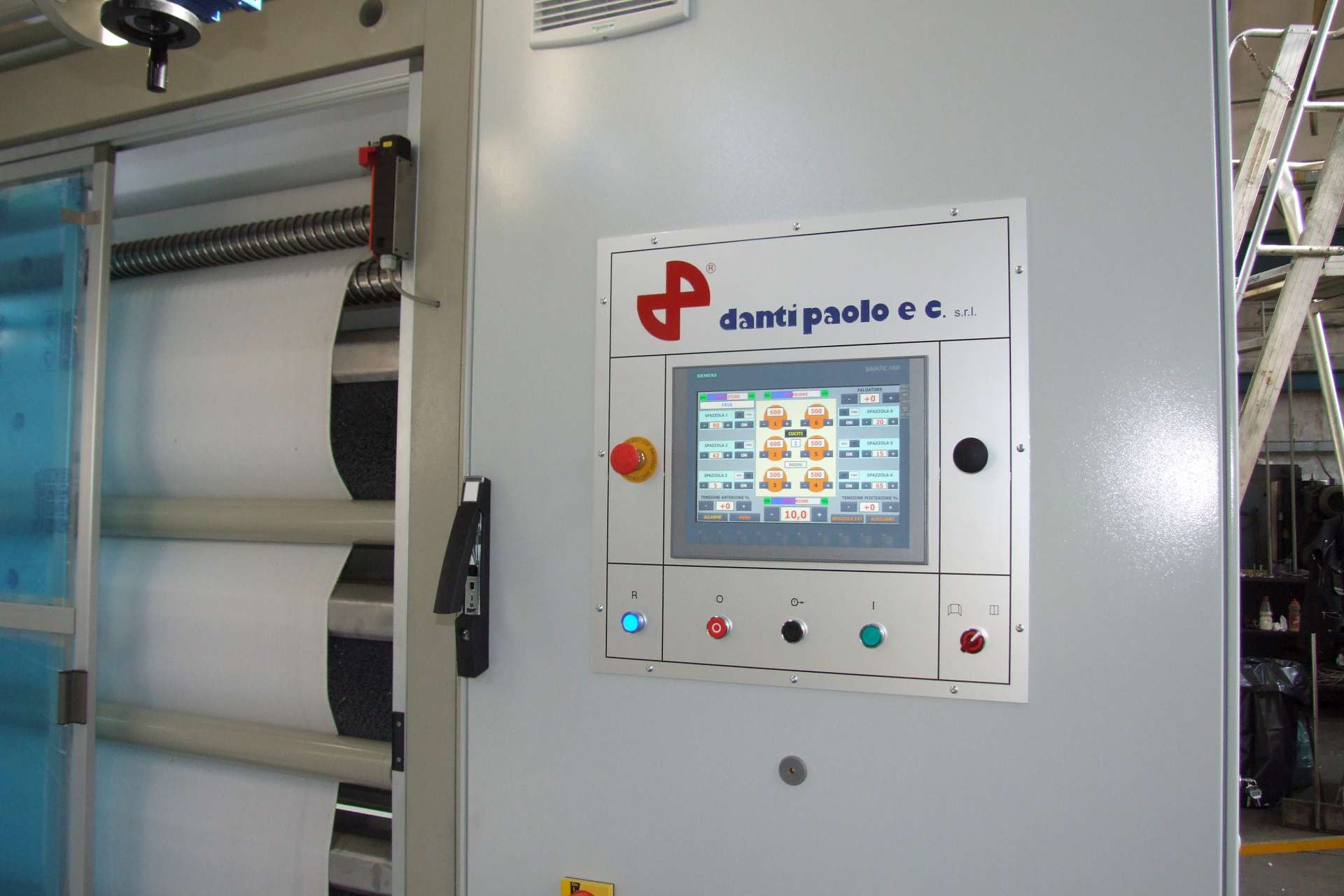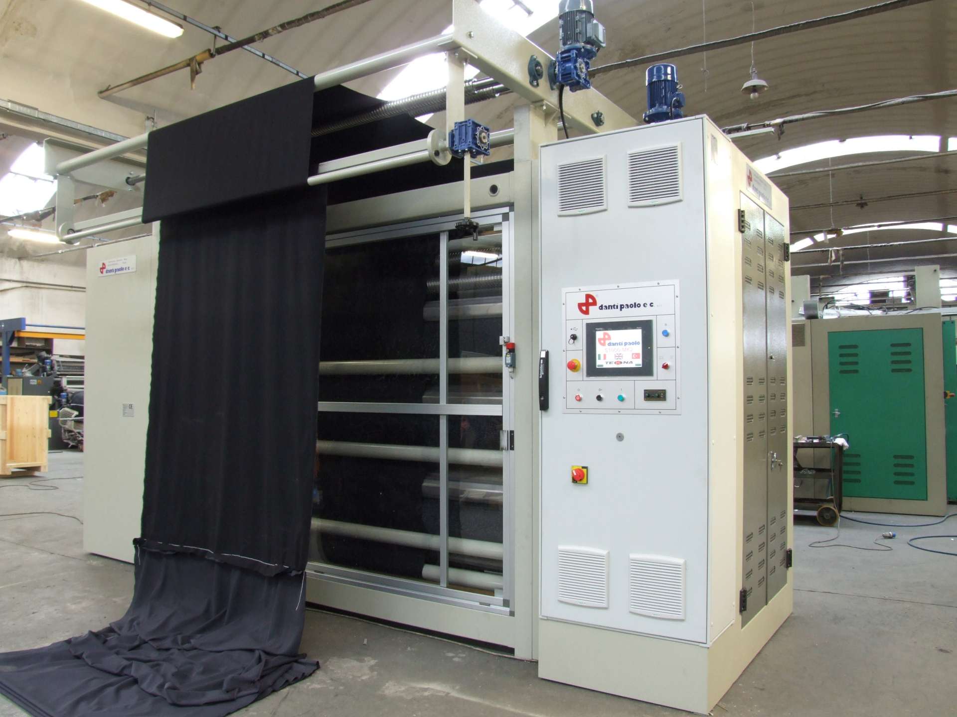 The FABRIC TENSION is AUTOMATICALLY CONTROLLED thanks to the feedback from 3 separate dancing rollers, an AUTOMATIC SEAMS DETECTOR ensures that the seams are not damaged, yet with a minimum fabric waste (only 5cm of unprocessed fabric before and after the seam).